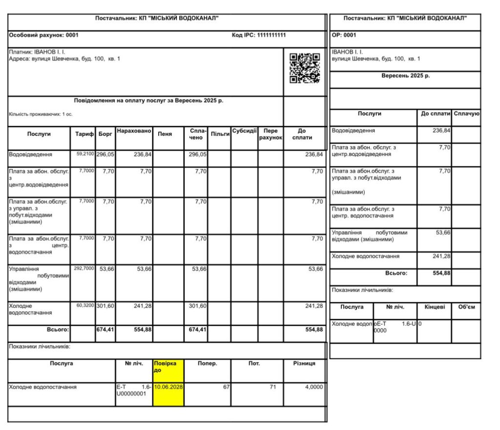 З інформацією щодо термінів повірки лічильників можна ознайомитися у повідомленні на оплату послуг та за тел. 0975292352.