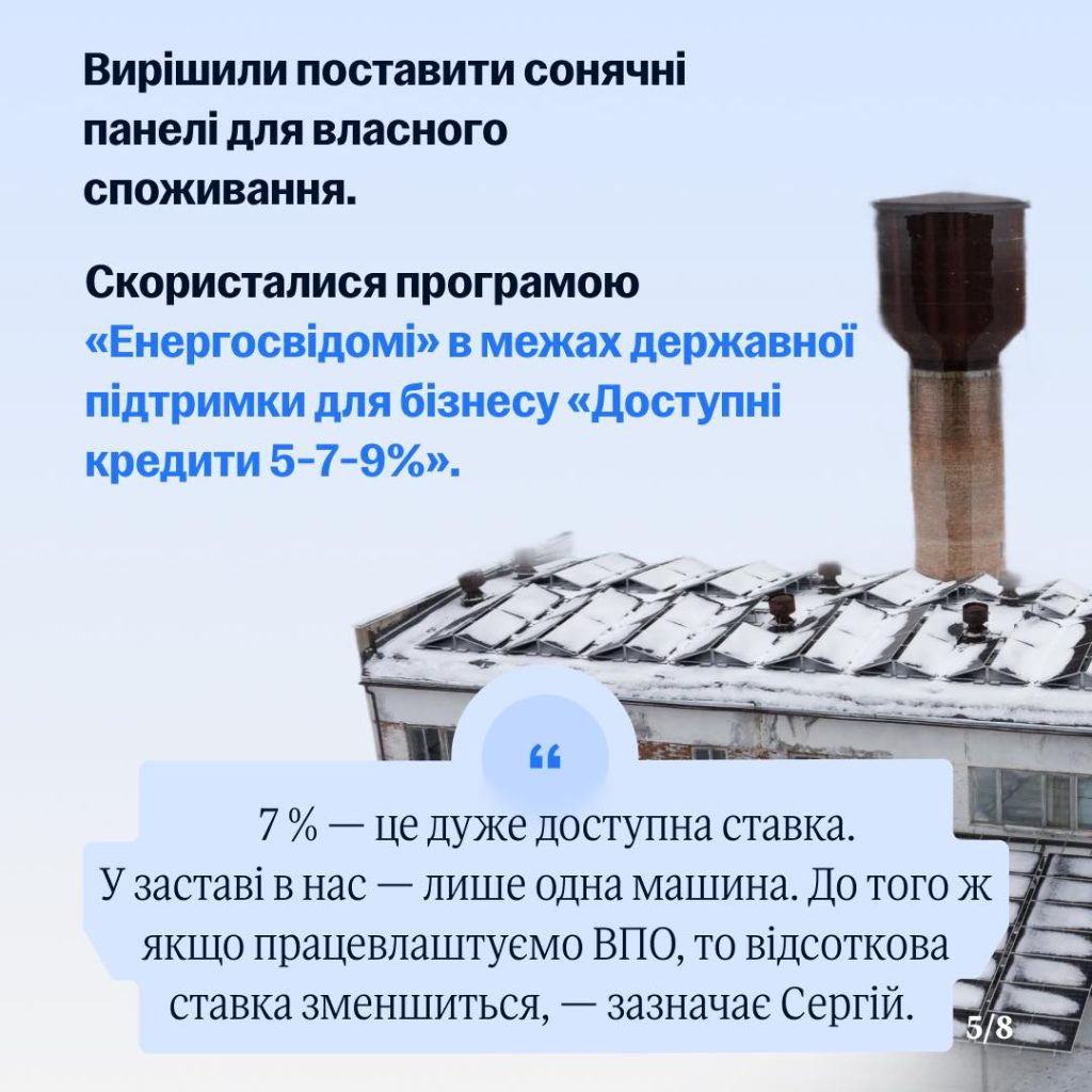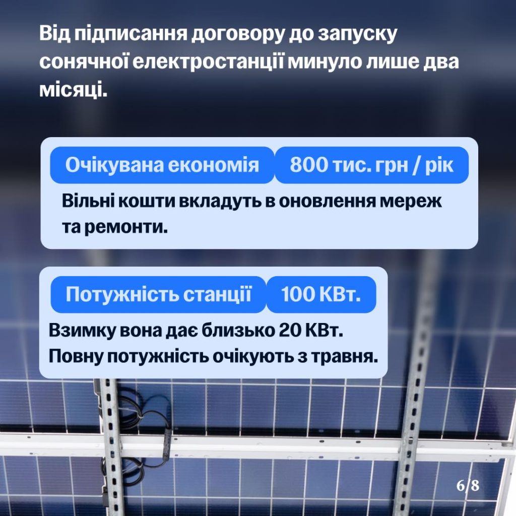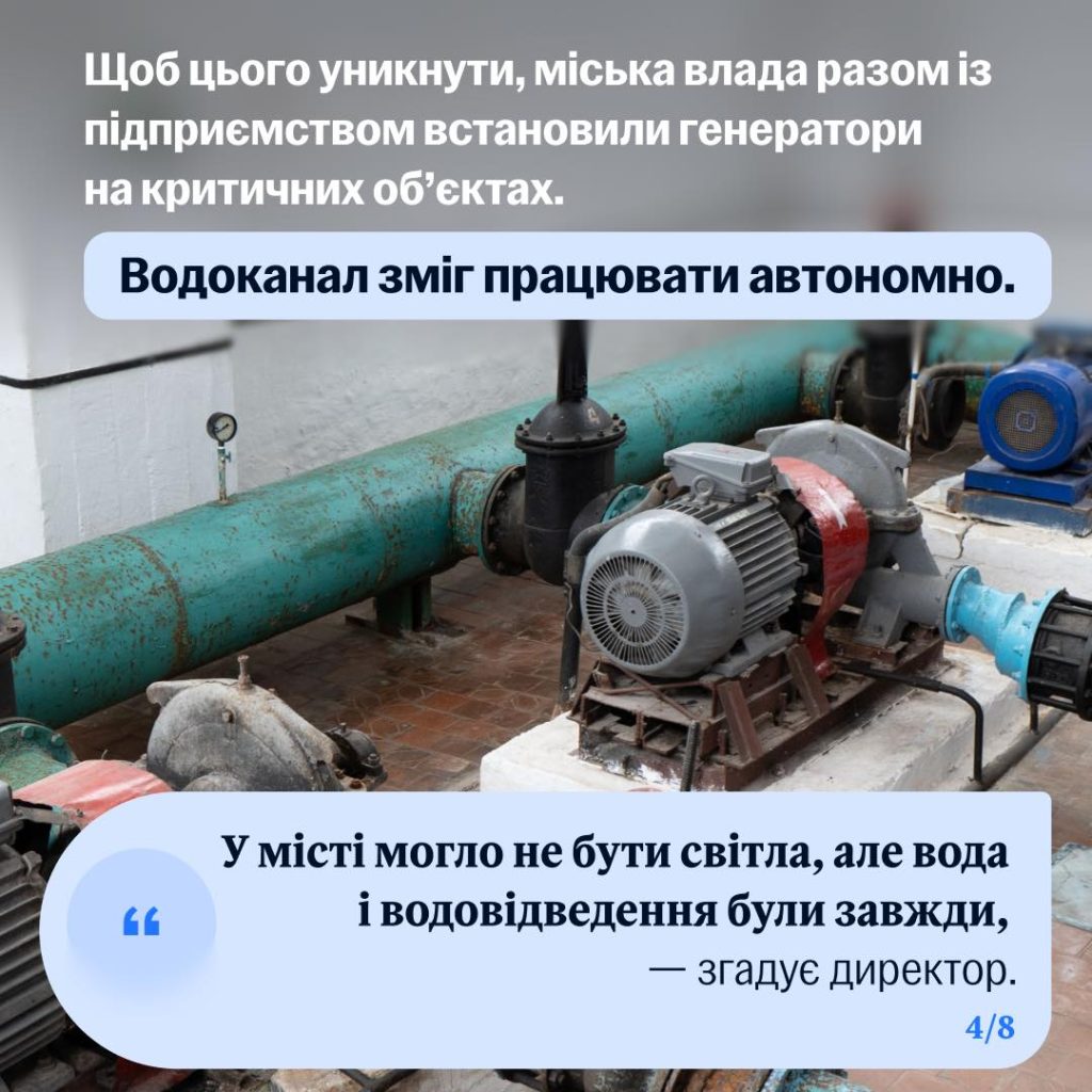 “Водоканал взяв кредит і встановив сонячні панелі з гібридними інверторами. Завдяки цьому підприємство тепер працює автономно, попри відключення світла після обстріли, безперебійно забезпечує місто водою і водовідведенням.